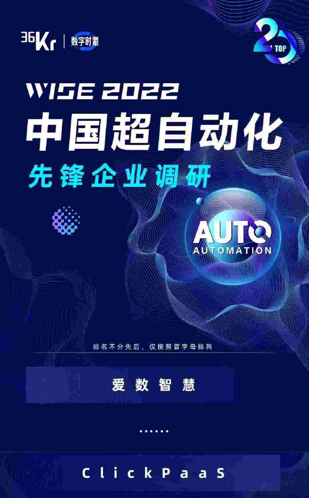 8月10日,,,,由36Kr主办的WISE 2022中国超自动化峰会在杭州成功举办。。CGPAY钱包作为国内低代码PaaS平台的领军企业,,,凭借过硬的技术实力和优质的产品能力,,在本次峰会中实力入选「2022年中国超自动化先锋企业」20强。。。。