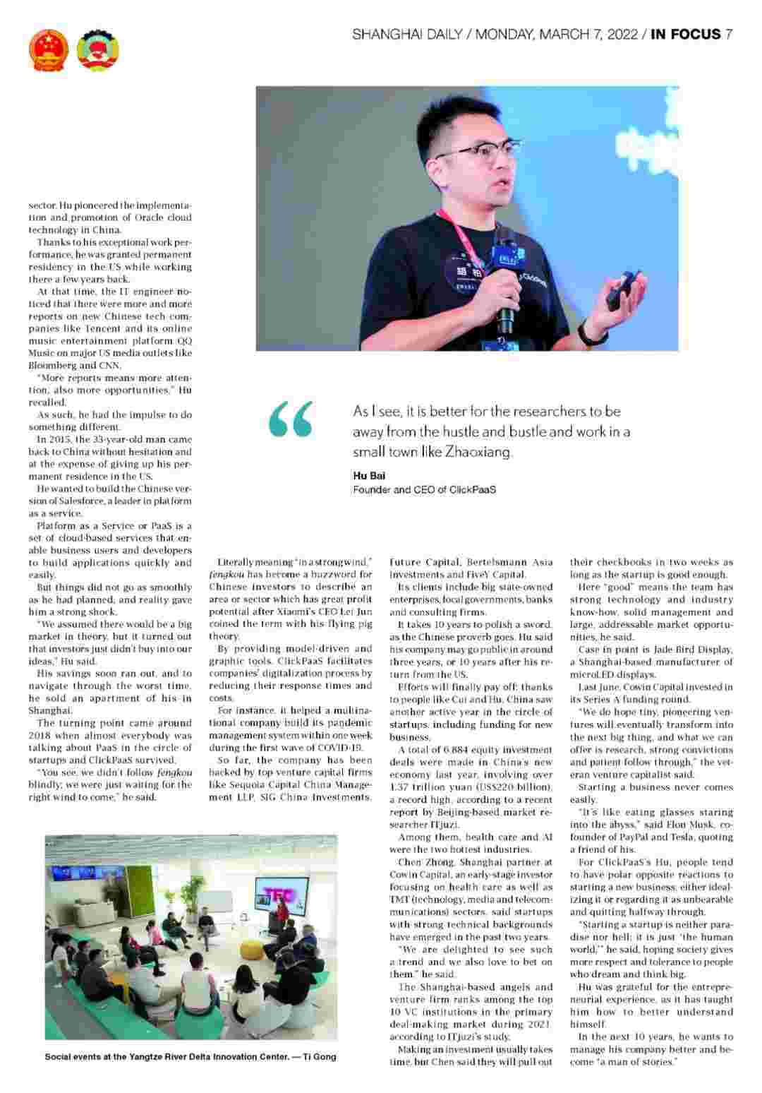 《上海日报》专访CGPAY钱包创始人、、、CEO胡柏,,,,探究其创业背后的故事!!!